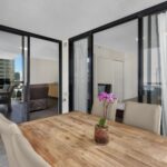 With soaring 2.8m ceilings enhancing its generous layout, hybrid engineered flooring throughout, and a large, stylish balcony with timber decking, this apartment offers an ideal space to relax or entertain. Located on the 28th floor with a sought-after North East aspect, it comes fully furnished and offers vacant possession – appealing to both investors and owner-occupiers alike.